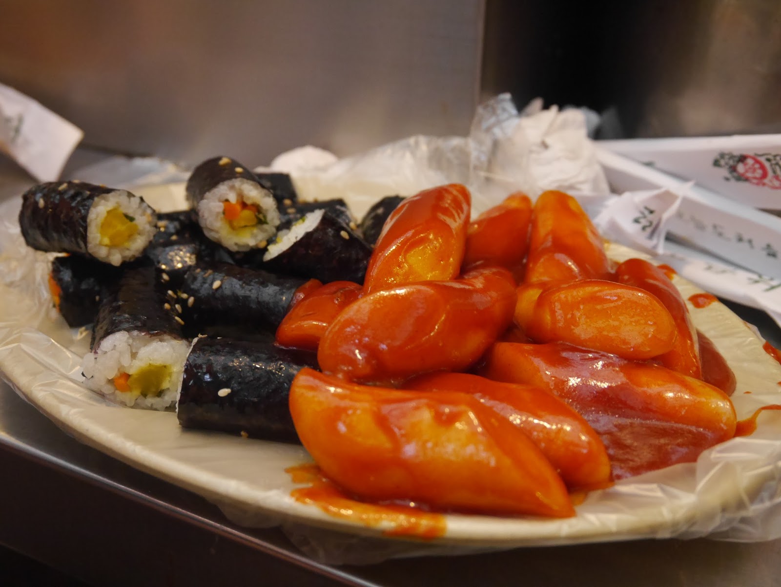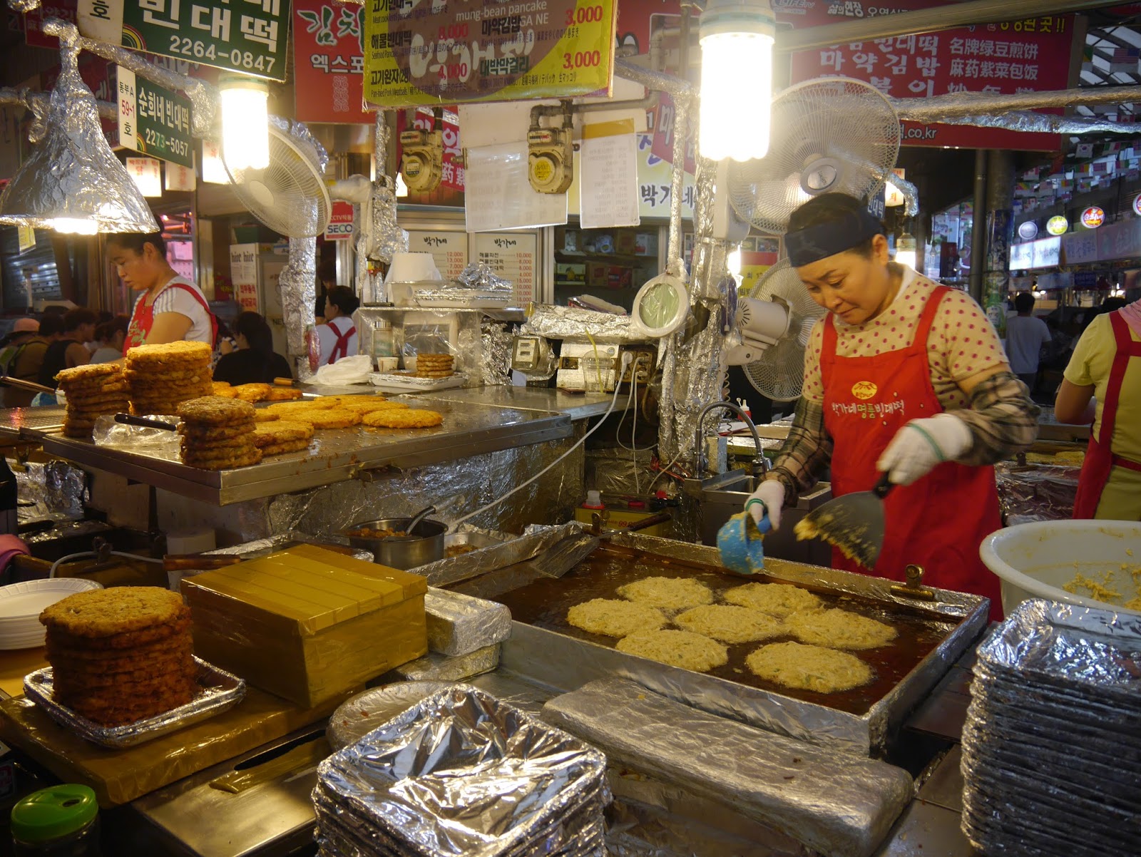 再往裡面走才是綠豆煎餅、麻藥飯捲、辣炒年糕等等