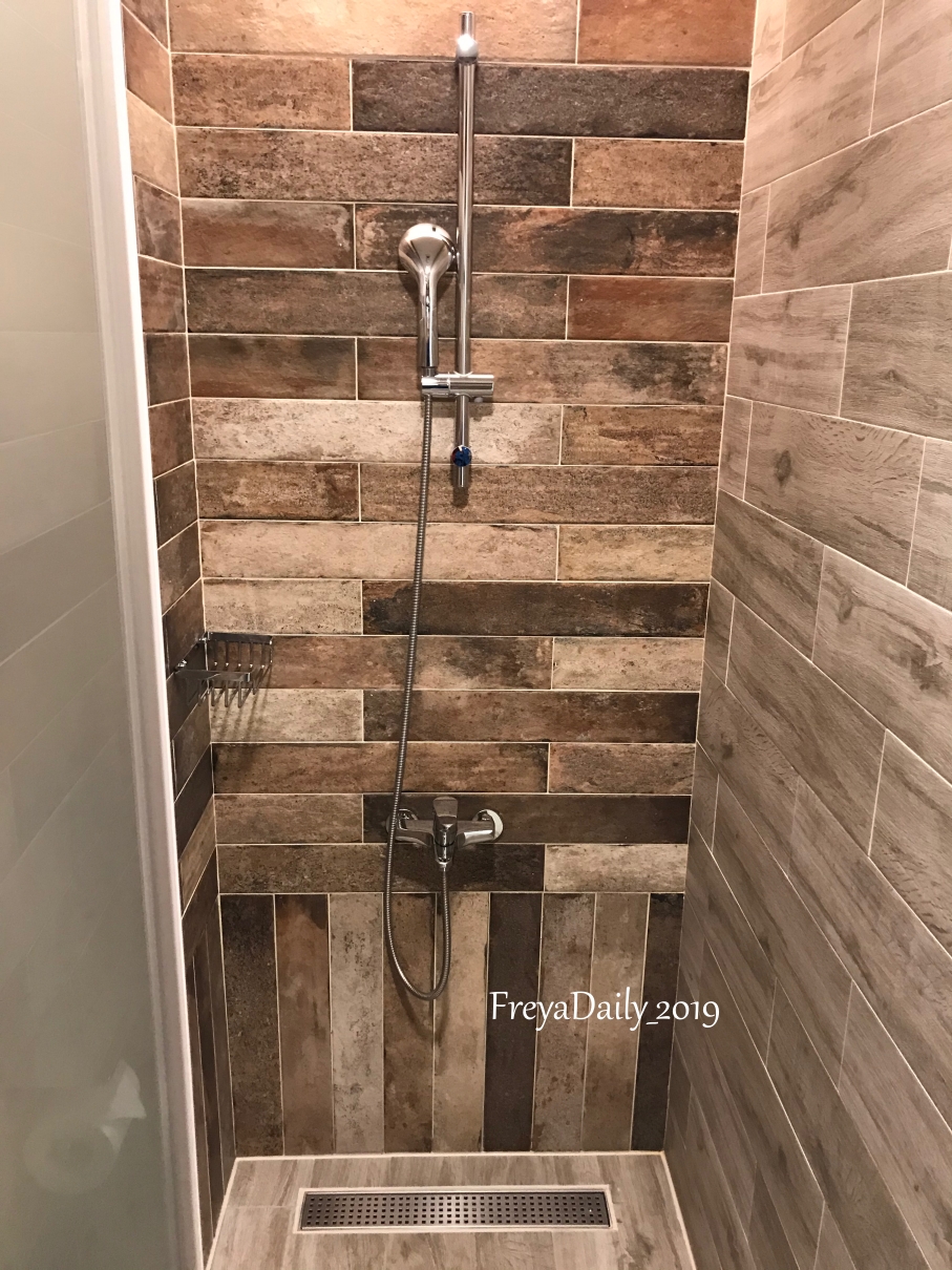 浴室的空間比較擁擠,一進門是廁所,正對馬桶的對面是淋浴間