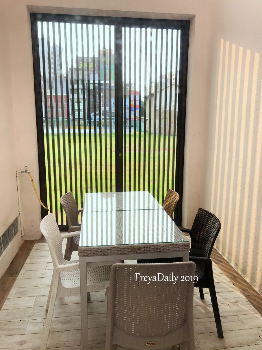 窗外是半戶外的露天座位,陽光灑落讓人覺得很愜意