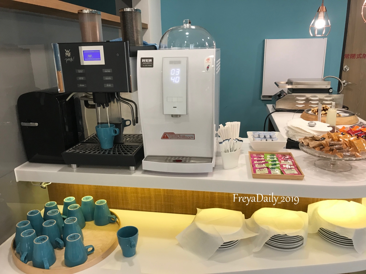 另外一樓提供咖啡機、飲水機和小點心