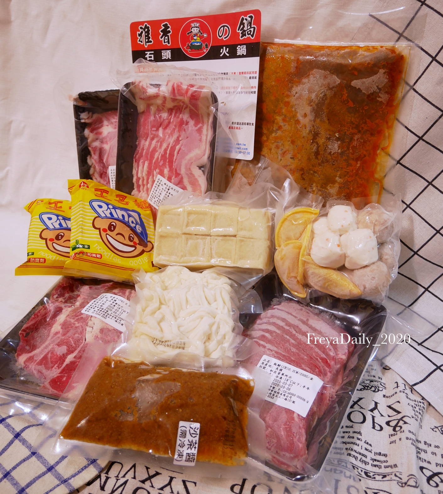 宅配內容真的超澎湃,有湯底、肉品、火鍋料,也有麵和獨家沙茶醬