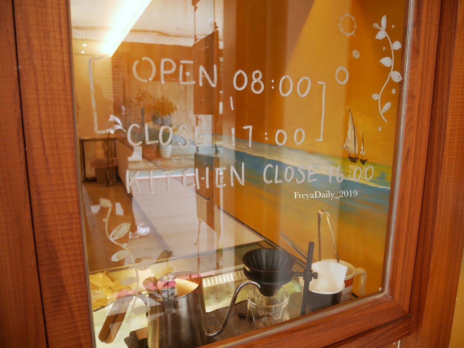 窗台寫著營業時間,手寫字體有點可愛
